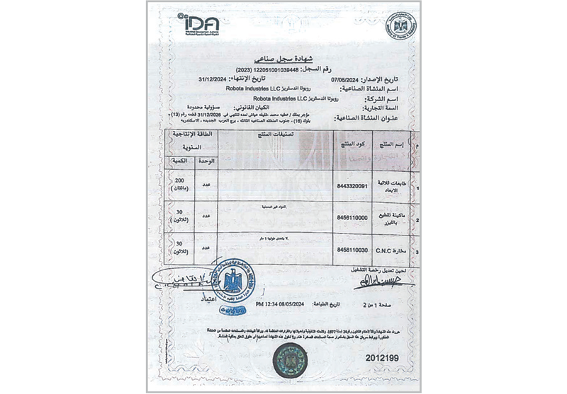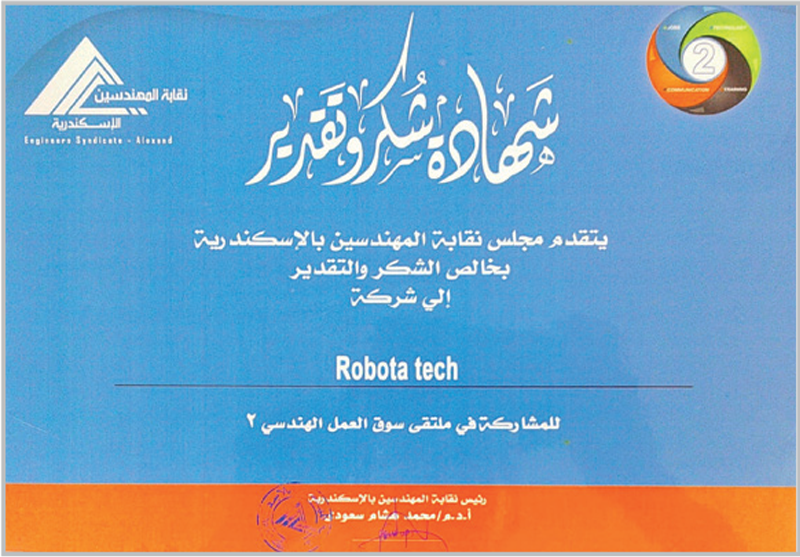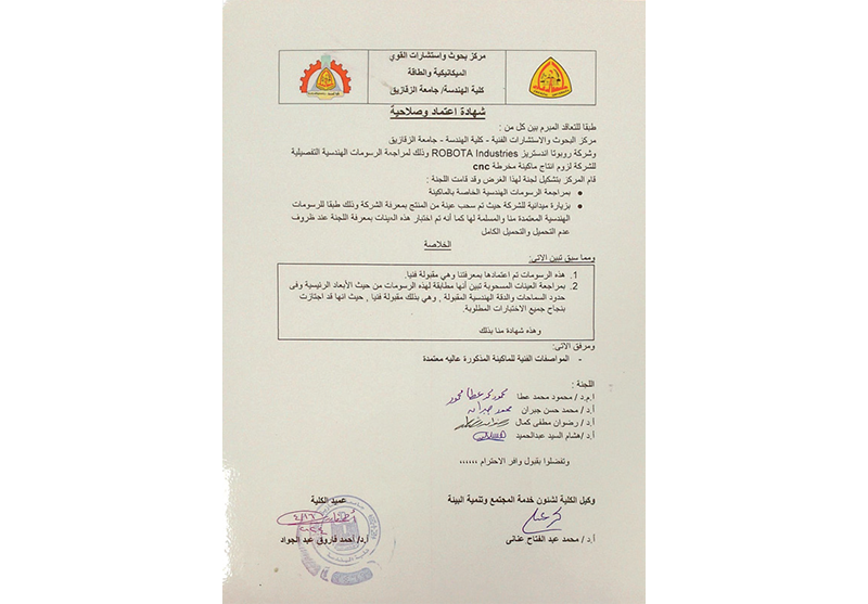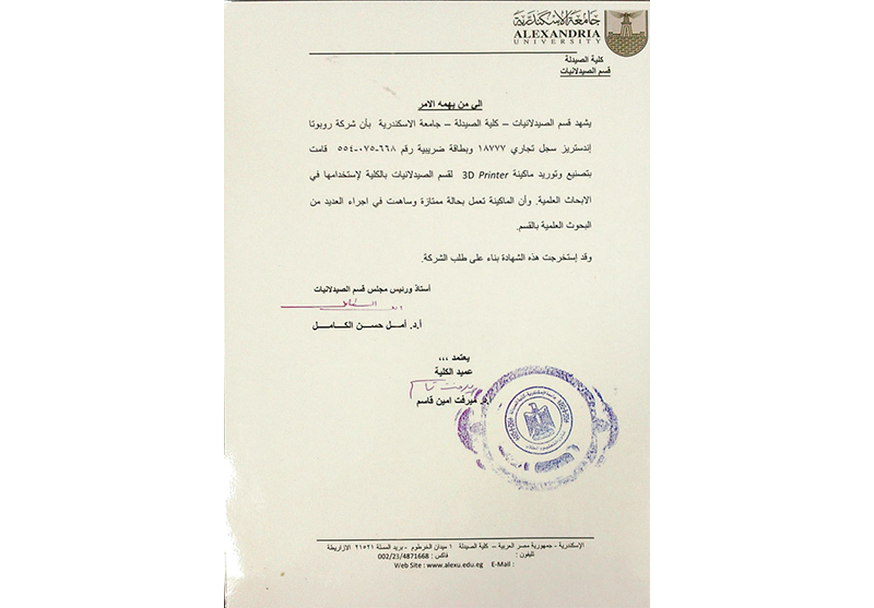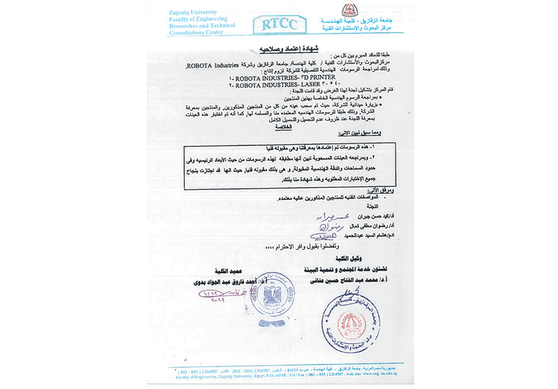 We are the first and only Egyptian manufacturer of medical research equipment, and we also hold certifications such as (Chewing Simulator, Bio 3D Printer, High precision Cutting CNC, Thermo-Cycler) branded by ROBOTA.