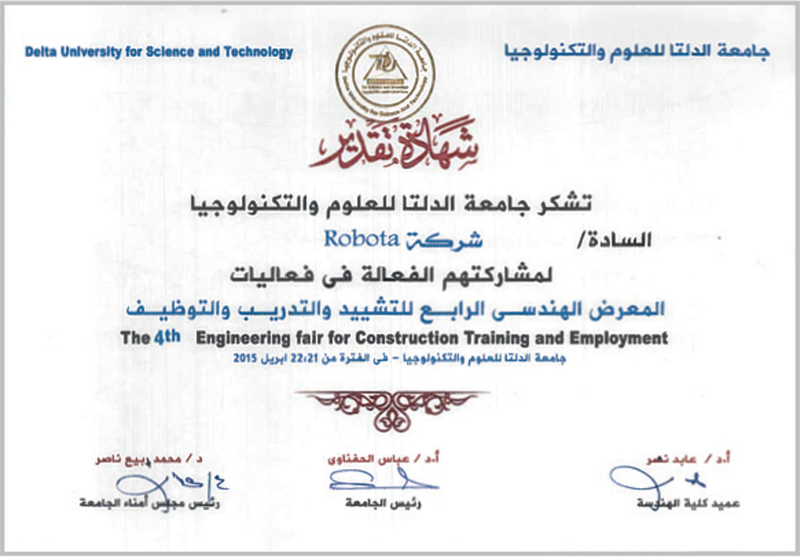 ROBOTA Industries is proud to have established strong partnerships with renowned universities and institutions. Our commitment to quality and innovation has led to certifications and collaborations that solidify our position as a trusted leader in the industry.
